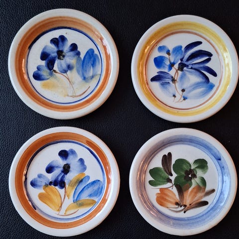 Isompi Joensuu 10,5 x 10,5 cm. Pyöreät Helsinki ja Åland halkaisijat 6,3 cm. Joensuu suorakaide 6 x 4 cm. Kahdessa ohuet nahkanauhat. Kaikki ovat ehyitä. Myydään yhteishintaan kaikki kerralla. Diili tai nouto. Jos haluat vain yhden, niin hinta on 5 e kpl. 12 euroa on kaikkien hinta.