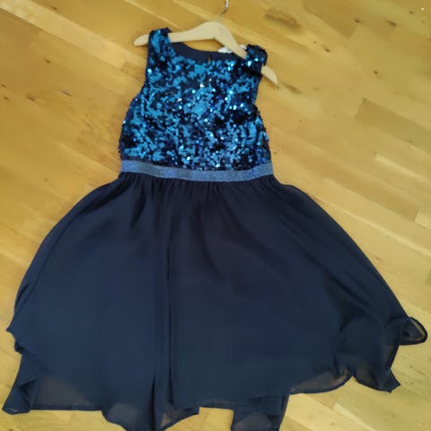 Ihana tyttöjen juhlamekko kultaisilla paljeteilla. Sivussa vetoketju.