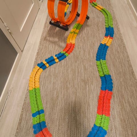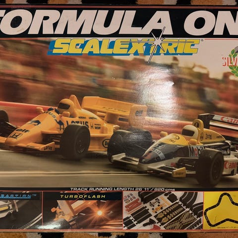 Käytetyt autoradat Race Track, siis kaksi rataa, joista puuttuu yksi auto ja yksi ohjain sekä yksi "nostake".