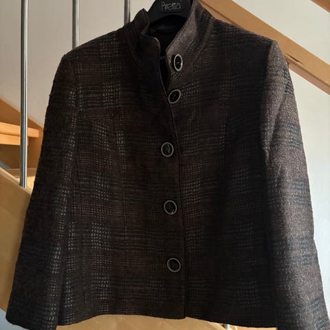 Voi käyttää jakkuna mutta myös puserona, koska on hyvin kevyt ja ohut. Monenlaista materiaalia ja kuviointia. Materiaali: 55% puuvillaa, loput jotain, muuta, olen leikannut puolet materiaalilapusta pois :). Takapituus 62 cm, kai-kai 54 cm. Voin postittaa