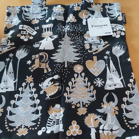 Ihana jouluinen Finlaysonin muumikuosi, kahdelle pullolle sopiva pullokassi. Vie vaikka glögiä lahjaksi tässä!