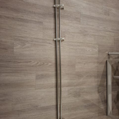 Myydään verhotanko, jonka pituus 113-217 cm. Tallella vain yksi pyöreä päätyosa. Tangon halkaisija n. 12 mm. Lisäksi kahdenlaisia seinäkiinnittimiä.