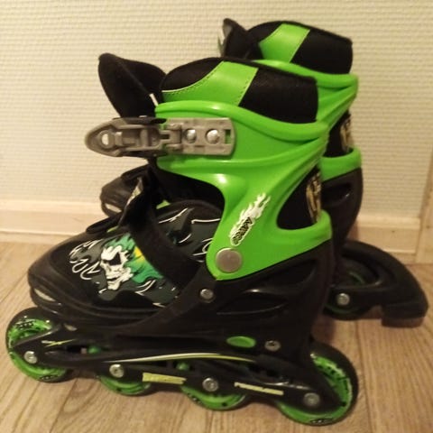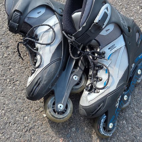 Rullaluistimet, koko 44, musta-oranssi väriyhdistelmä. Soveltuvat rullaluisteluun. Luistimissa on neljä pyörää per luistin ja ne on suunniteltu tarjoamaan vakautta ja hallintaa rullaluistelussa.