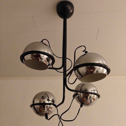 Aris Polaris -kattovalaisin. Kuusi palloa, korkeus noin 64cm. Arisuo oy, 1970-luvulta.