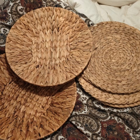 2 tarjotinmaista kaislajuttua. Näistä voi tehdä tarjottimet tai sitten laittaa seinälle bohotyylisesti. Näitä ei ole käytetty.