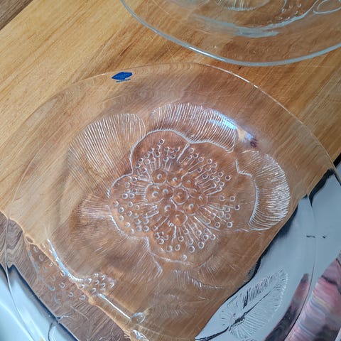 Myydään kaksi nuutajärven kirkkaita pioni lautasia.molemmissa tarrat,ehjät,pieniä käytönjälkiä.halkasia 26cm.