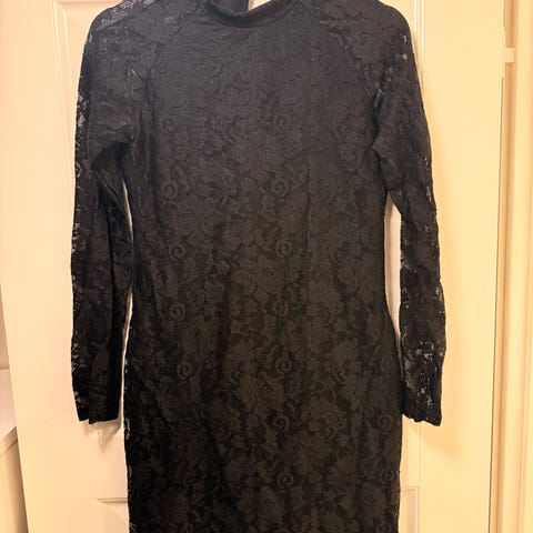 Pitkähihainen pitsimekko, joustava. Yläselkä avoin.