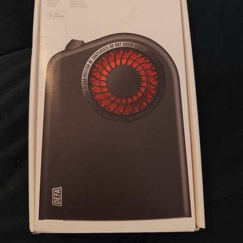 Defa Termini 1350W sisätilanlämmitin (1130711). Ok kuntoinen muuten mutta teipistä jäänyt liima lämmittimeen kiinni (kts.kuvat). Saa varmasti poistettua vaikka Sinolilla tai muulla liuottimella.