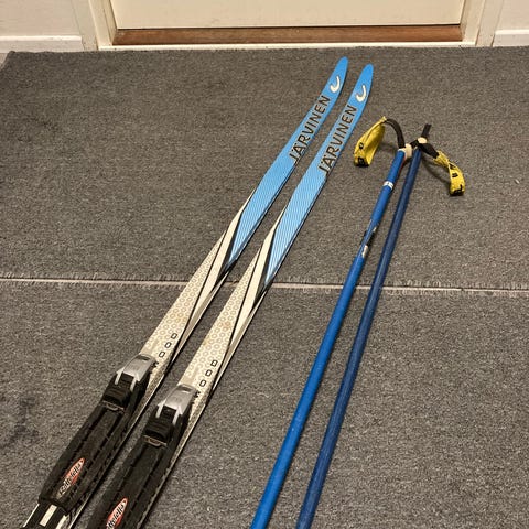 Ihan ok käyttökunnossa olevat perinteisem tyylin sukset, vaikka koulun hiihtotunneille minne ei välttämättä parhaita suksia kannata / tarvi viedä.
