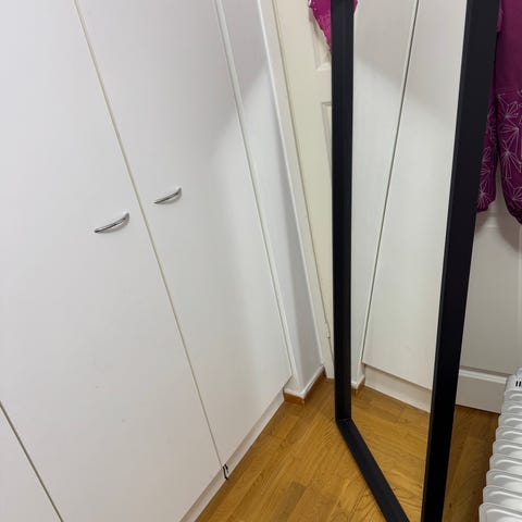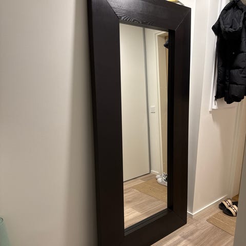 IKEA Peili mustalla kehyksellä. Peili on suorakulmainen ja sopii seinälle ripustettavaksi. Käytetty sisustuselementtinä tilojen somistamiseen ja tilan tuntua lisäämään. Pituus 110cm ja leveys 70cm
