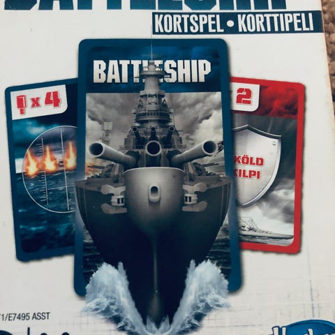 Avaamaton korttipeli Battleship. Vähän kärsinyt paketti, yritetty avata.