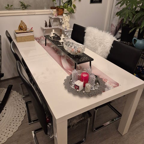 Hyväkuntoinen Pohjanmaan kalusteen pöytä ja kaksi tuolia. Pöytää voi käyttää ruokapöytänä, baaripöytänä, aamiaspöytänä. Pöydän päällä käytetty koko ajan suojalasia joten pinta on säilynyt uuden veroisena. Jalat ovat muhkeat 9x9 cm neliöt. Ryhmässä 2 alkuperäistä tuolia jotka 1x verhoiltu uudelleen. Vain nouto Tampereen Multisillasta. Hissitalo, omat kantajat mukaan. Jalat voit irrottaa kuljetuksen ajaksi.