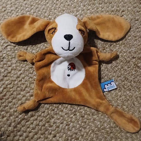Siisti, ehjä ja tuoksuton äitiyspakkauksen unilelu, uniriepu. Pilvi merkki. Meillä ei lemmikkejä eikä sisäilmaongelmia.