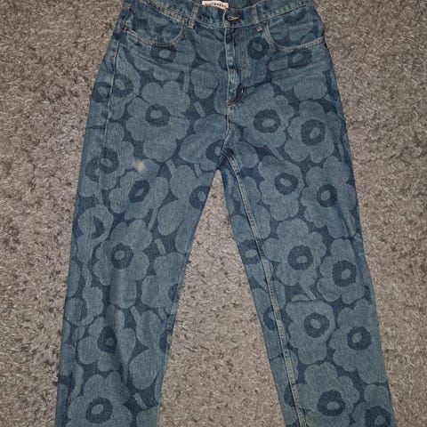 Marimekko maridenim straight piirto unikko farkut unikkofarkut housut vaihto