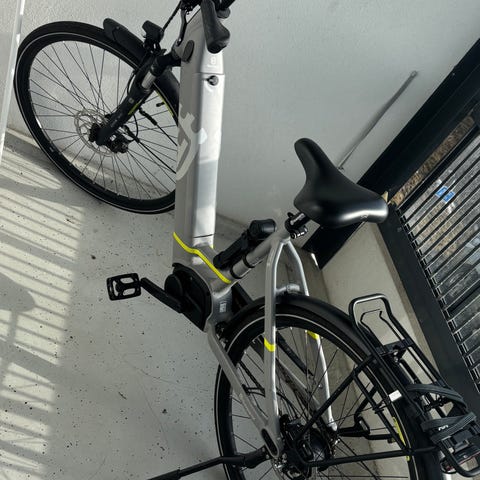 Sähköpyörä on hyvässä kunnossa ja yleisilmeeltään siisti. Takahaarukassa on pienehkö kolhu.