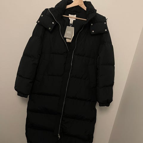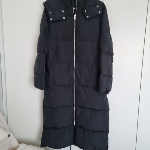 H&M Pitkä untuvatakki mustassa värissä, naisten kokoon S