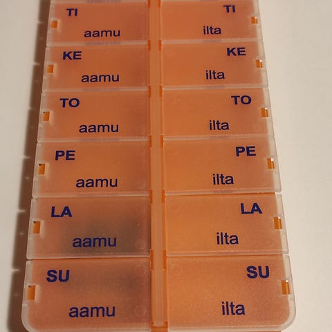Käyttämätön, isompi kokoinen lääkeannostelija/dosetti.
