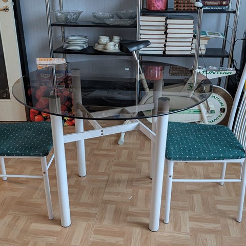 Myydään kotisiilistä ostettu valtava pöytä. Pöydän päällä ollut vahakangas, mutta Käytönjälkiä on.