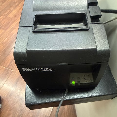 Myydään kuvien mukainen kuittitulostin, kannessa naarmuja näkyy kuvissa, sekä kuitin syöttöaukossa alumiini ohjain kuitille.