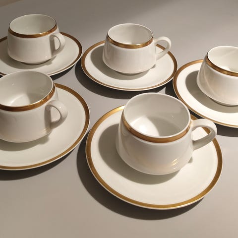 Myynnissä olevat 8 kuppia ja tassit ovat ehjiä ja muutenkin hyväkuntoisia myös kultausten osalta.