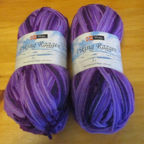 Myynnissä Viking Raggen, väri 761. Sisältää 70 % superwash-villaa ja 30 % nylonia. Kerässä on noin 225 metriä. Puikkosuositus 4,5 mm. Pesulämpötila 40°C , ei rumpukuivausta, ei huuhteluainetta. Savuton ja eläintalous (=löytyy mahdollisesti eläimen karvoja). MMM.