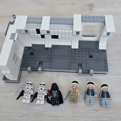 Lego 7957 Sith Nightspeeder, osia puuttuu ja kolmas minigiguuri kokonaan ja toiselta minufiguurilta puuttuu "kruunu".
