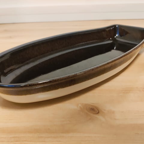 Myydään Kermansaven keraaminen uunivuoka kalalle, esim. kirjolohelle.