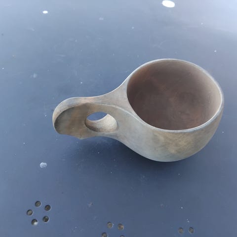 Myydään vuonna 1977 koivupahkasta käsinveistetty käytetty kuksa