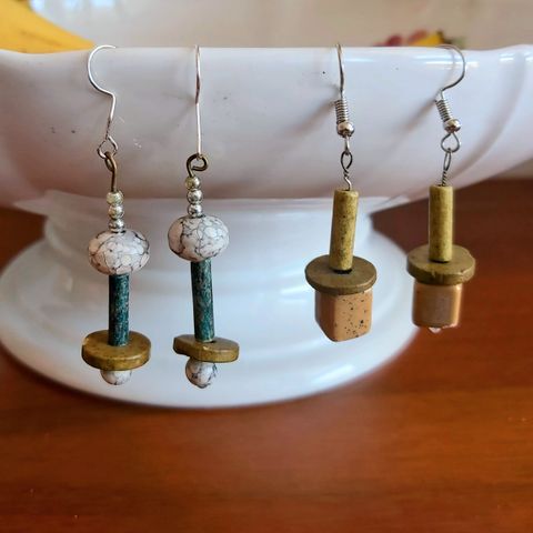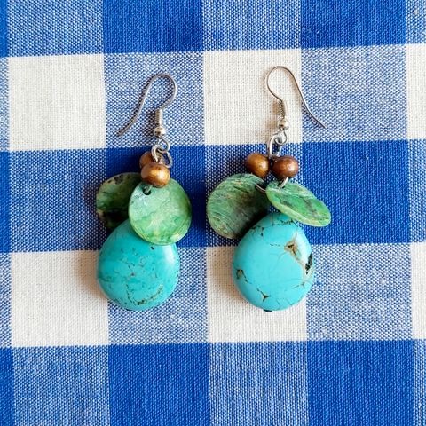Keveät ja näyttävät korvakorut, joissa on useita pyöreitä helmiäislaattoja. Kauniisti valossa kiiltävät ja liikkuvat herkästi. Antiikkimessingin värinen koukku antaa korvakoruille vintage-henkisen ulkonäön.