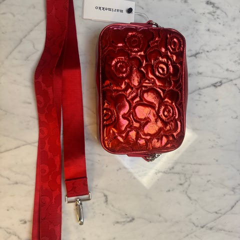 Myydään marimekon knitted bag large, väri punainen-beige. Nouto Järvepäästä mieluiten. En käytä toridiiliä mutta voin postittaa.