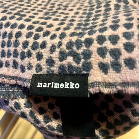 Valkoinen-beige Marimekon Kuiskaus huopa. Materiaali puuvilla ja villa.