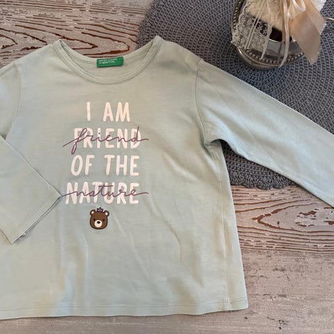 Benettonin kolitsi. Rinnassa sinisellä painettu ”ötökkä-logo”.