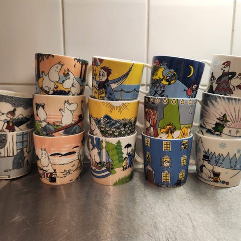Mukit on käytettyjä ja niissä voi näkyä käytönjälkiä.