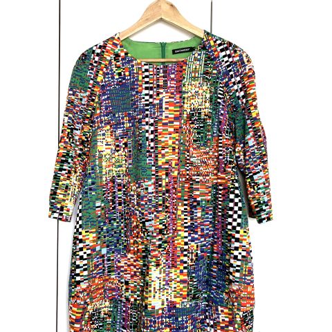 Marimekko/Mika Piirainen tunika, koko 40. Kai-kai 51 cm, olka-helma 81 cm, hihan pituus 39,5 cm. Täysin ehjä, nypytön, puhdas ja hajuton. Pesty vain hajusteettomalla herkän ihon pesuaineella, ei ole käytetty huuhteluainetta.