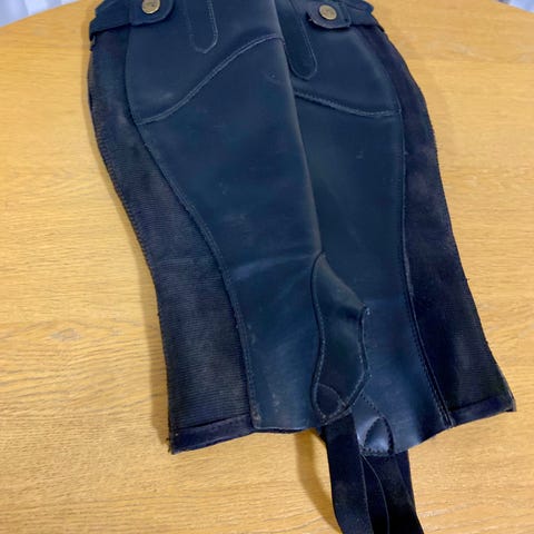 Lasten minichapsit koossa 6 (vuotta?). Hyvin vähän käytetty, super siistit, mutta oikean jalan chapsista puuttuu alanepparin vastinpala.