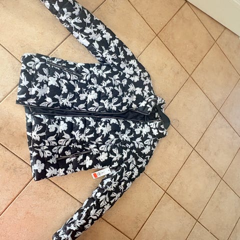 Auriel koko 42. Kauluksen saat niskan yli korvien suojaksi, kampaus ei kärsi. Kuohkea. Olkasaumasta pituus helmaan 78 cm. Hartialeveys n 44 cm. 100% polyester, pesu 40°C