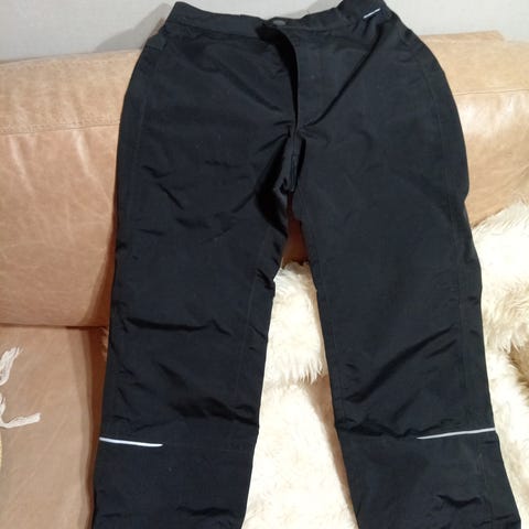 Ticketin uudet kuorihousut koossa 146. Laput vielä kiinni. Heaven pant. Vesipilari 8000 eli vedenpitävät, teipatut saumat, hengittävät. Hyvät heijastimet (lahkeessa ja taskujen vetoketjuissa). Meillä ei ole eläimiä eikä tupakoida, ei voimakkaita hajusteita.