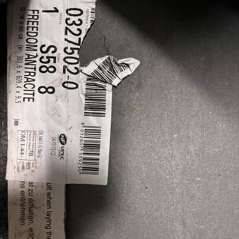 Uudet. Yksi arkki 10×10 cm laattoja, sävy antrasiitti.