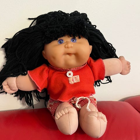 Ihana Kaalimaan kakara, mustatukkainen nukke, joka hyvin siisti eikä ole päässyt aikoinaan leikkeihin mukaan. Nukelle kuuluu mukaan myös silmälasit, kengät ja syntymätodistus, En postita