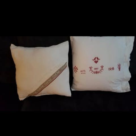 Sisustustyynyjen halkaisija on 40 cm. Tarjolla kaksi mallia. Hinta 25 euroa kpl.