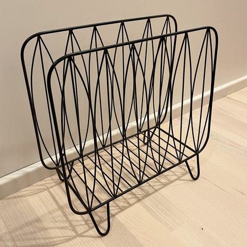 Myydään vanha metallinen lehtiteline. Musta. Hyvässä kunnossa. Nouto Forssasta. Mitat korkeus 50cm. Leveys 32cm.