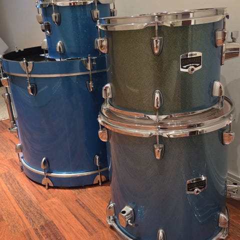 Musiikki-Fazerista ostetut Yamaha Gigmaker rummut, väri vihreä. Yhdellä rummuttajalla, vähällä käytöllä. Pölyiset, olleet aina sisätiloissa varastossa. Kulumia on kalvoissa. Mukaan lautaset ja tuoli. Muuten ehjät, muistaakseni yhdestä rummusta yksi kiinnitysosa rikki. Vain haku Kirkkonummelta. Käteinen tai mobilepay.