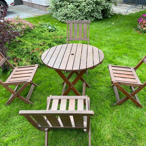 Ehjä pöytä ja tuolit, saa purettua osiin.