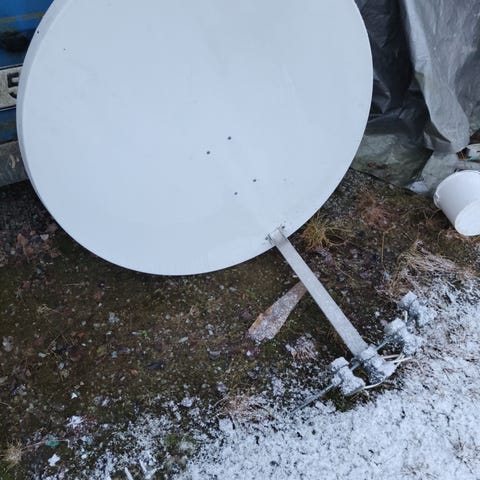 Alumiininen sateliittiantenni n.1.8M työntötankomoottorilla, maajalka, vanha viritin, moottorin ohjain boxi, vastaanottopäät. Viimeksi ollut käytössä 7 vuotta sitten. Hinta itse purettuna.
