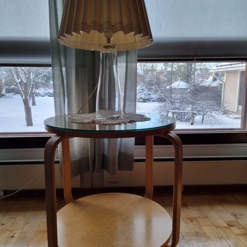 Siisti ja tyylikäs sohvapöytä seuraavaan kotiin. Ei isompia moitteita; puupinnasta löytää tarkkaan syynäämällä pieniä jälkiä, joita ei arkikäytössä erota eläväisen pinnan ansiosta.