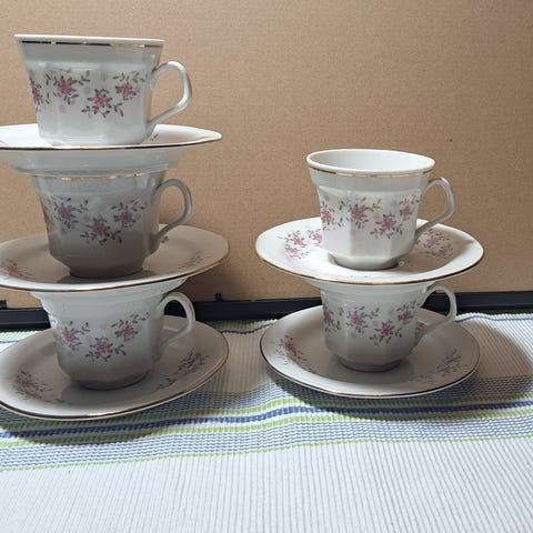 Retro astiat (kahvikupit ja aluslautaset sekä ruokalautaset)