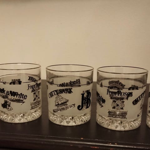 5kpl eri viskimerkkien laseja. Käyttämättömiä ja siistejä. Kaikki samaa kokoa, tilavuus ~2.25dl.