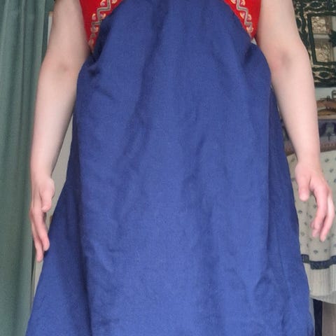 Ylimääräinen Parikkalan kansallispuvun hame. Vy n 70cm, pituun n 87cm + 3cm käänne. Yleiskunto on hyvä ja siisti. Yksi tahra ja muutama katkennut yksittäinen lanka ohuemmissa raidoissa, näistä kuvat ilmoituksessa. Varsinaisia reikiä kuitenkaan en havainnut.