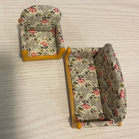 Sylvanian Families vintage sohva 80-luvulta. Käytönjälkeä. Reikä takana, huomioitu hinnassa.