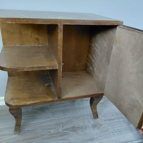 Puuosiltaan virheeton ja kaunis, radio toimiva. Levysoittimessa korjattavissa oleva vika.